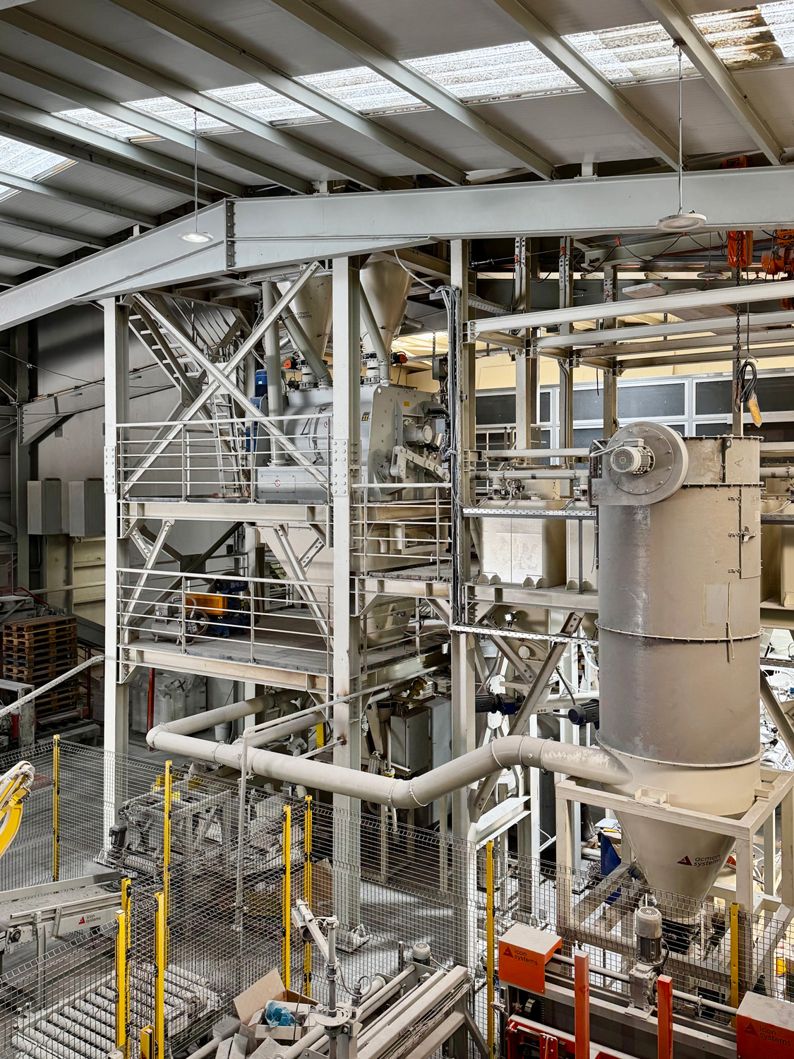 Το πλήρως αυτοματοποιημένο, γερμανικής τεχνολογίας εργοστάσιο παραγωγής της FINOMIX είναι σχεδιασμένο σε κατακόρυφη διάταξη (πύργος), με στόχο τη μέγιστη παραγωγικότητα και τη μείωση της ενεργειακής κατανάλωσης.