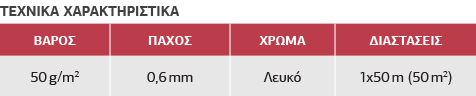 ΠΕΡΙΓΡΑΦΗ Ισχυρό πολυεστερικό ύφασμα για την ενίσχυση στεγανωτικών στρώσεων από υβριδικά πολυουρεθάνης, ακρυλικά, πολυουρεθανικά και ελαστομερή ασφαλτικά επαλειφόμενα.